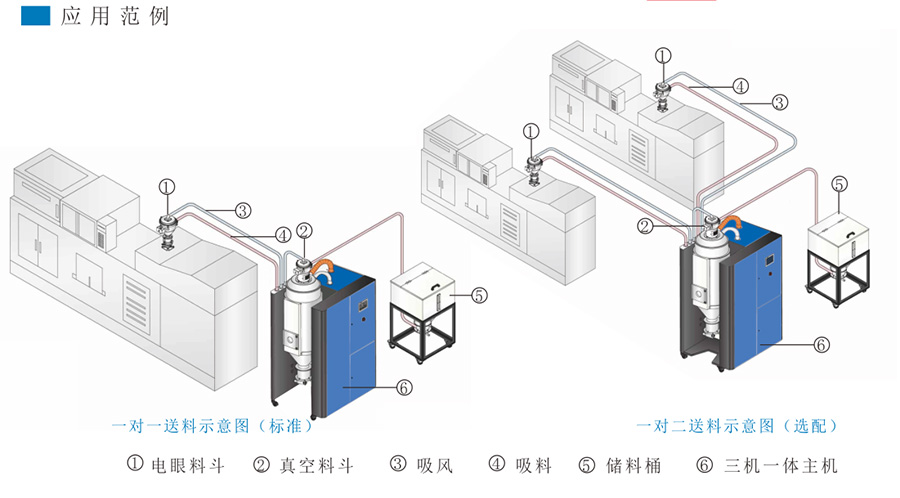 可选配高效能过滤及光学级储料桶,以确保原料不受外界空气污染,可选配3台注塑机原料供给。