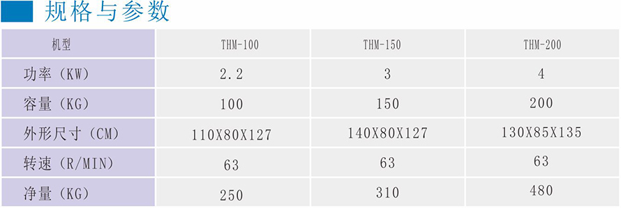 料桶和搅拌叶用全不锈钢制造,清洗容易,绝无污染;连锁安全保护装置,确保操作者及机器本身的安全;