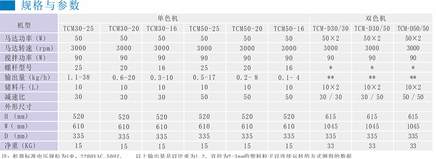50组参数配方,永久记录出料时间及成品重量(挤出机为每分钟最大吐出量);