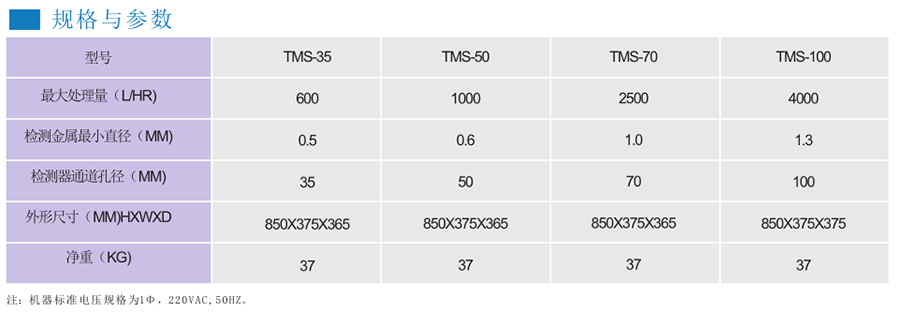 TMS系列金属侦测分离器灵敏度高,能快速准确的分离出原料中所含有的各种金属,如不锈钢.铁.铜.铝.锡等。其原理为金属杂质经过金属侦测电子设备时,电子侦测器可发出信号,启动阀门,排除含有金属杂质 的原料。采用气动排送系统,体积小,排送准确。可直接安装在射出(压出)机料斗上能更好地保证螺杆不被金属杂质损坏。该系列有四种机型,处理量为400L/hr~4000L/hr,可满足客户不同的需求。