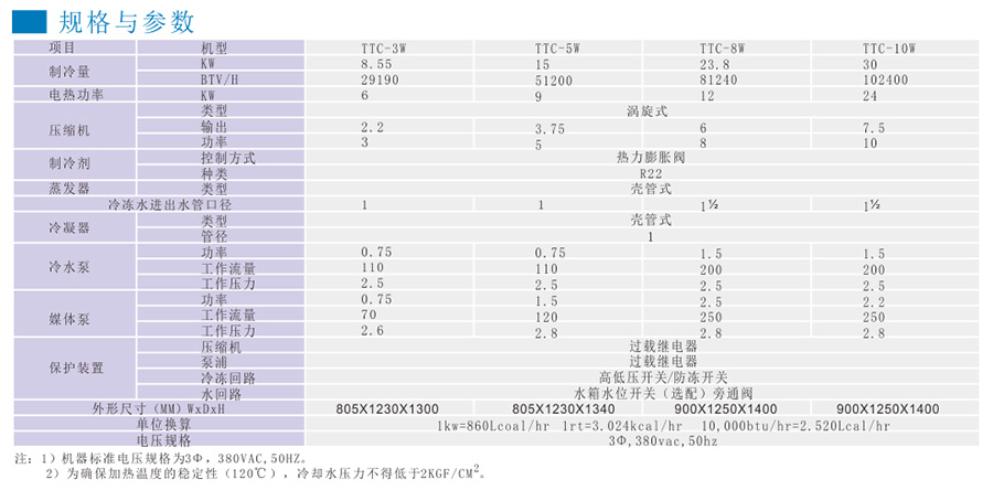 压缩机及泵浦均有过载保护;本机可控制单冷单热或双冷或双热模式。