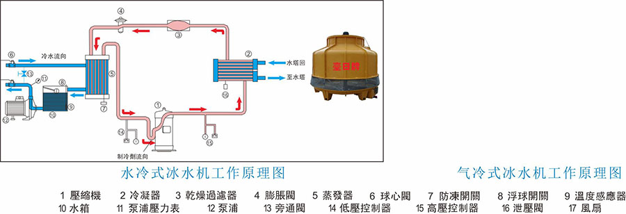 可选配8T~1000T水塔冷却水冷式冷水机。
